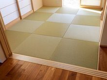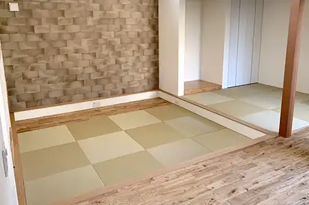 畳の縁が無いため圧迫感がなく、和室を開放的な空間に演出します。